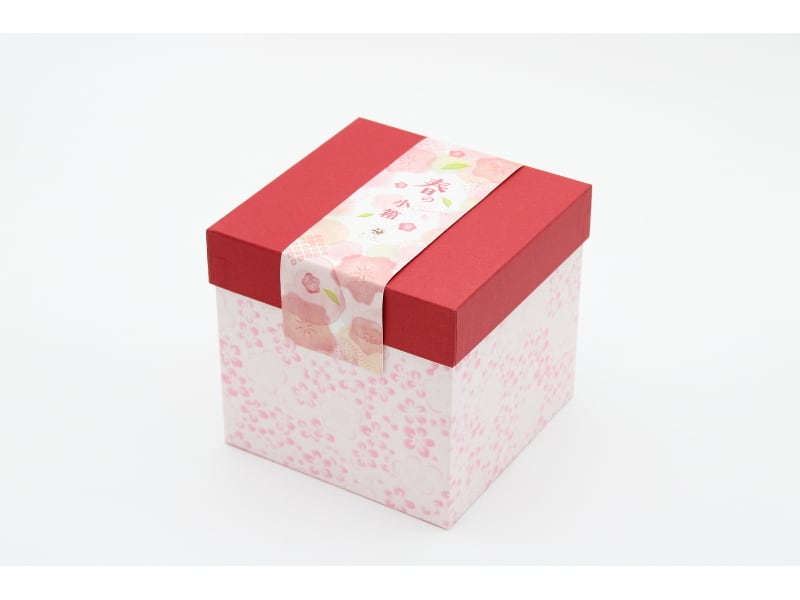 赤い蓋に桜をあしらった和モダンなボックスでお届けします。
