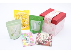 セット内容:桜煎茶ティーバッグ(2g×2袋)、しじみのみそ汁(1食)よもぎ茶(1.5g×6袋)、レモングラス茶(2g×5袋)、しじみ醤油バターせんべい(70g) 専用ギフトボックス入り